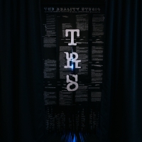 A UV-printed canvas, designed by Darius Ou and mounted as a suspended scroll, maps a speculative timeline of these covert developments. Cut-up logics, broadcast signals, and algorithmic patterns converge into a single entrainment loop, charting a secret history of media shaped by ambivalent, hidden forces. The form recalls both ceremonial banners and the unspooling feed, linking spiritual technologies of attention to the infrastructures that later replaced them.