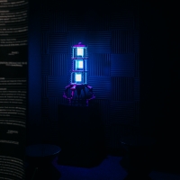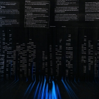 The audio layer, composed by Mervin Wong, deepens this cosmology. Using a generative engine that ingests and manipulates streams of online chatter, the soundscape breaks speech, notification tones, and digital residue into pulses, granular fragments, and spectral traces. These elements continuously recombine, producing an acoustic field that oscillates between overload and drift—a sonic analogue to the trance conditions embedded in contemporary interface design.