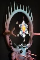 Votive Spiral and Serpent Vessel act as biomorphic reliquaries, objects that oscillate between scientific instrument and ritual device. Their forms echo biological architectures, chemical geometries, and devotional artefacts, suggesting that the act of knowing is always entangled with systems of belief.
